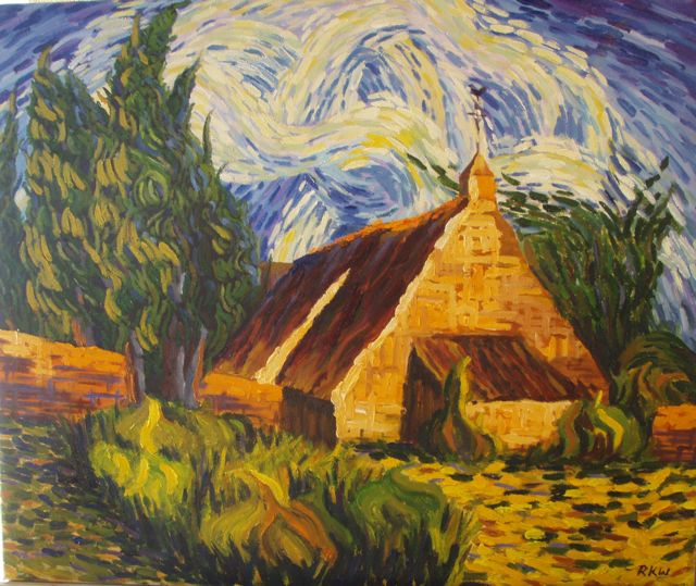 van gogh farm painting stretched 20x26 done canvas oil gohg anastasia