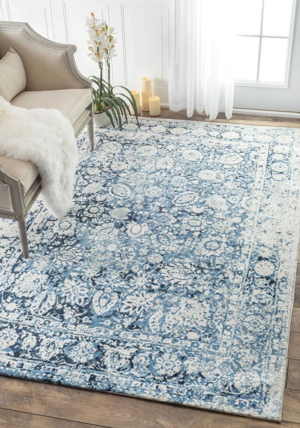 living room rug navy wash rugs farmhouse modern neutral aburstofbeautiful pattern subtle decor rooms plushrugs isn adds